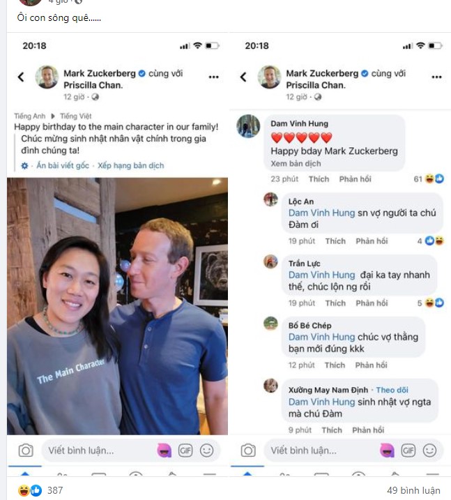 Ngay lập tức, cộng đồng mạng đã phát hiện ra lỗi sai của giọng ca ‘Nửa vầng trăng’. Bởi bài đăng của ông chủ Facebook rõ ràng là chúc mừng sinh nhật vợ thế mà Đàm Vĩnh Hưng lại nhầm lẫn sang sinh nhật của tỷ phú Mark Zuckerberg. Đúng là sai sót tai hại!