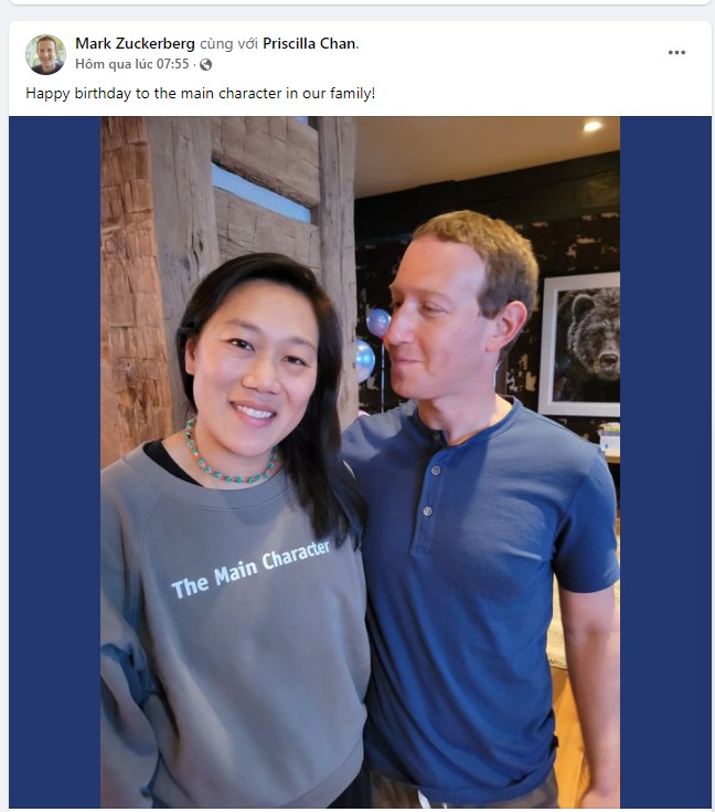Tỷ phú công nghệ - Mark Zuckerberg không chỉ được biết đến là một trong những người giàu nhất nhì thế giới với khối gia tài đồ sộ mà còn cực kì thương vợ, đúng chuẩn người chồng mẫu mực. Mới đây, ngày 24/12 (theo giờ Mỹ) nhân ngày sinh nhật vợ - Priscilla Chan, ông chủ Facebook đã đăng tải một bức ảnh đáng yêu cùng vợ kèm lời chúc ngọt ngào: “Chúc mừng sinh nhật của nhân vật chính trong gia đình chúng ta.”