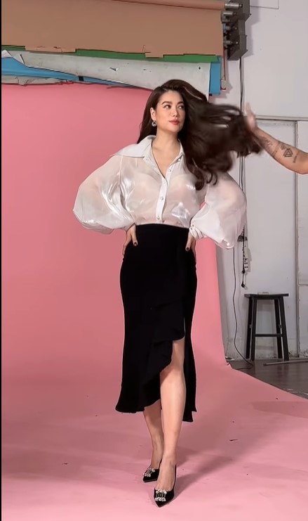 Cụ thể, trong buổi chụp hình lookbook mới nhất, nữ diễn viên ‘Hương gas’ diện trang phục áo xuyên thấu cùng với chiếc chân váy dài được cắt xẻ tinh tế khoe khéo vóc dáng ‘chết người’. Vốn là một người mẫu nổi tiếng của Vbiz trước khi lấn sân các lĩnh vực nghệ thuật khác, lần nào thực hiện bộ ảnh mới cô cũng làm khán giả "mắt tròn mắt dẹt" vì hình thể cân đối và thần thái "đỉnh" của mình.