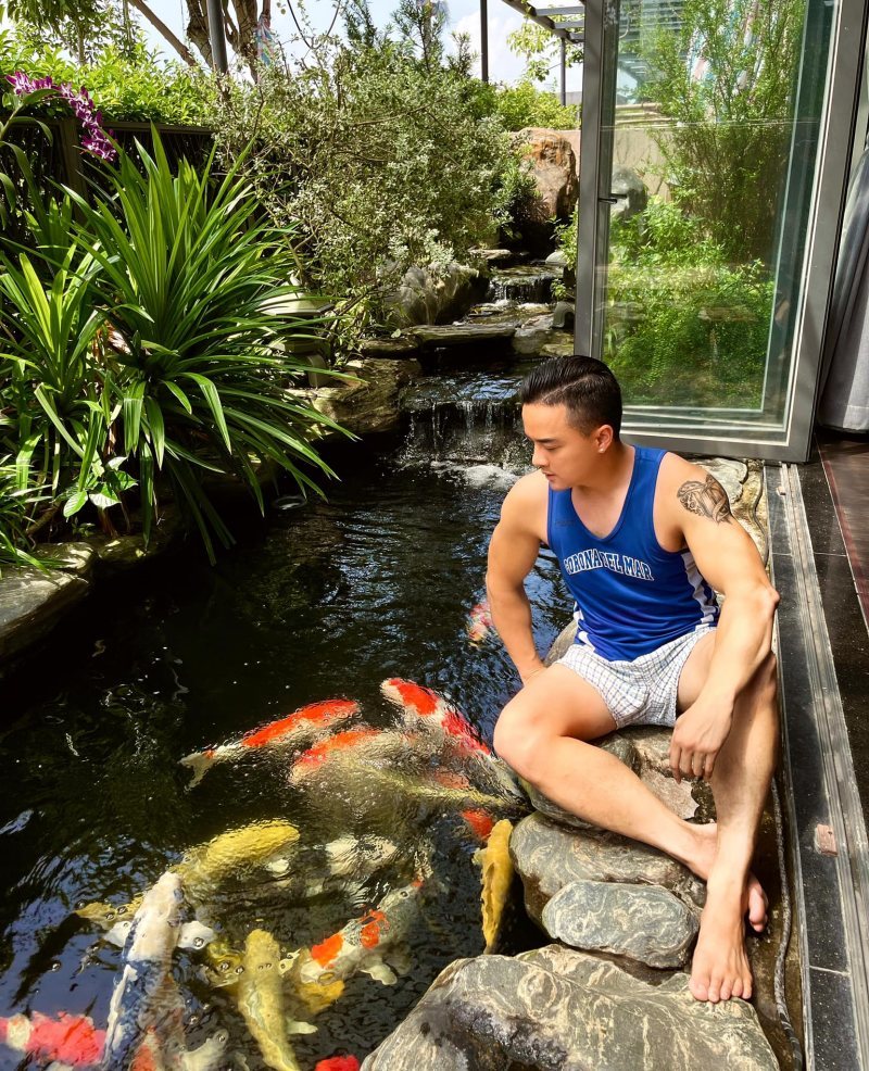 Nổi bất nhất phải kể đến hồ cá Koi rộng lớn được anh chăm chút và đầu tư. Để xây dựng nó, nam ca sĩ đã phải dùng đến 10 tấn đá với chi phí gần 1 tỷ đồng. Ngoài ra, căn biệt thự còn sở hữu không gian thoáng mát, đúng chuẩn khu du lịch sinh thái, là nơi thích hợp để thư giãn và nghỉ ngơi.