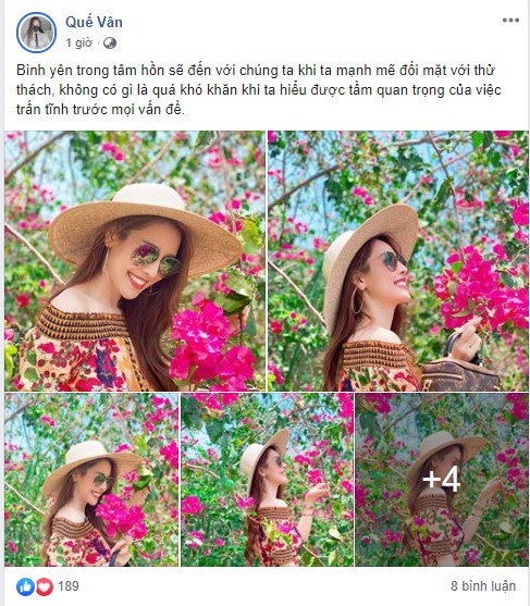 Qua những dòng trạng thái này, người đẹp cho thấy mình đang tìm kiếm một cuộc sống bình yên và trút bỏ đi những ghen tức cũng như ồn ào trước đây. Chính vì thế mà tâm trạng của Quế Vân khiến người hâm mộ cho rằng cô vẫn bị ảnh hưởng bởi mối tình đầy sóng gió với nam danh hài Trường Giang.