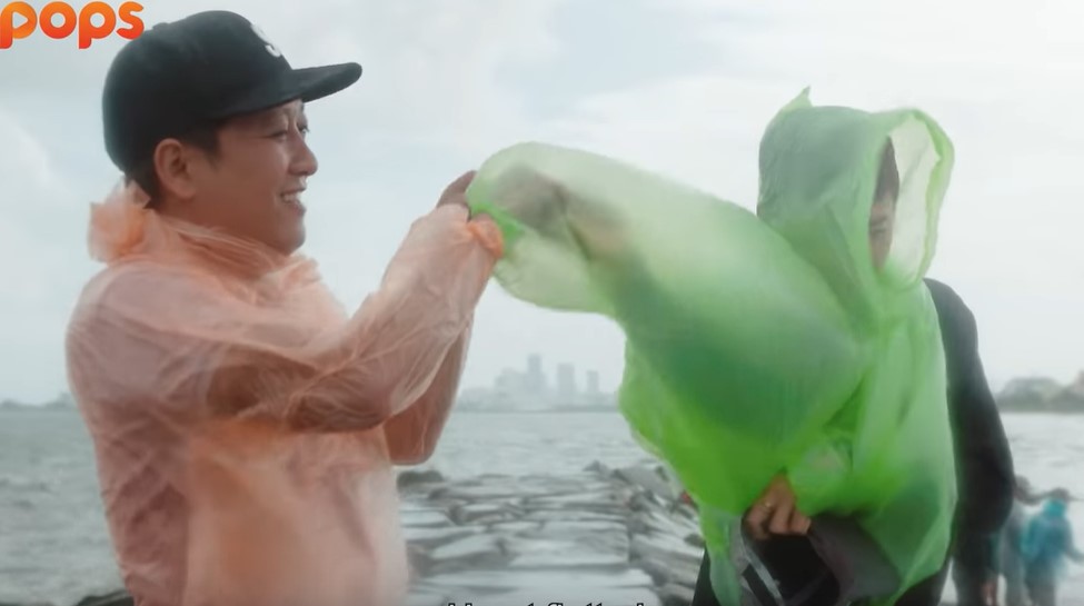Cụ thể, khi Trường Giang và Ngô Kiến huy đi câu cá Đối ở biển Đà Nẵng, hai nghệ sỹ bắt buộc phải mặc tạm chiếc áo mưa lá để ngăn sóng biển đập vào người. Trong khi Ngô Kiến Huy phải loay hoay khi mãi mà không thể mặc nổi chiếc áo mưa, Trường Giang đã nhanh tay giúp người em của mình tiện thể còn bày cho anh chàng một tuyệt chiêu.
