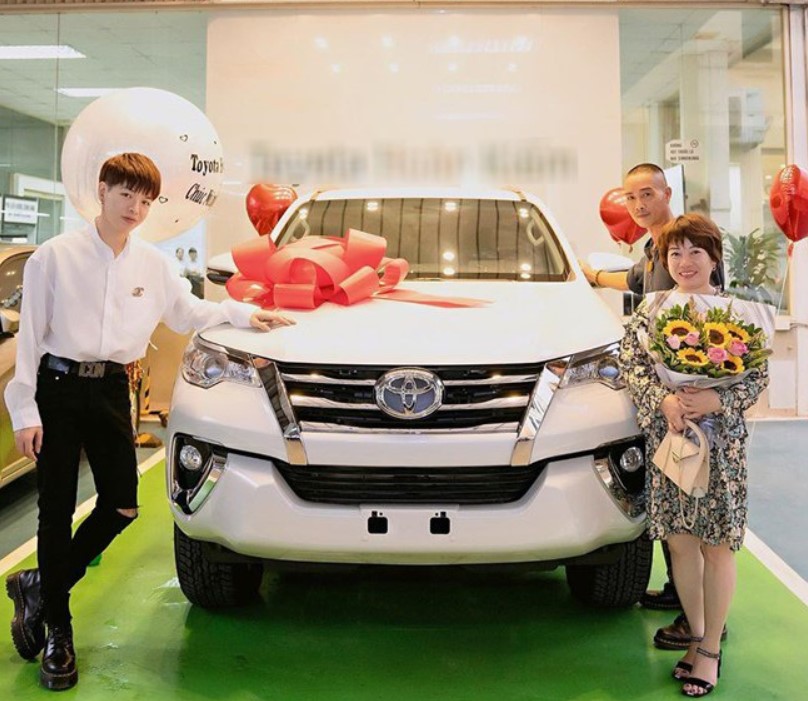 Nam ca sĩ tâm sự: “Mấy chục năm lái xe taxi rồi lái xe cho sếp, chưa lần nào bố được lái một cái xe mới. Hôm nay là lần đầu tiên đấy. Một món quà đặc biệt dành cho mẹ và bố".