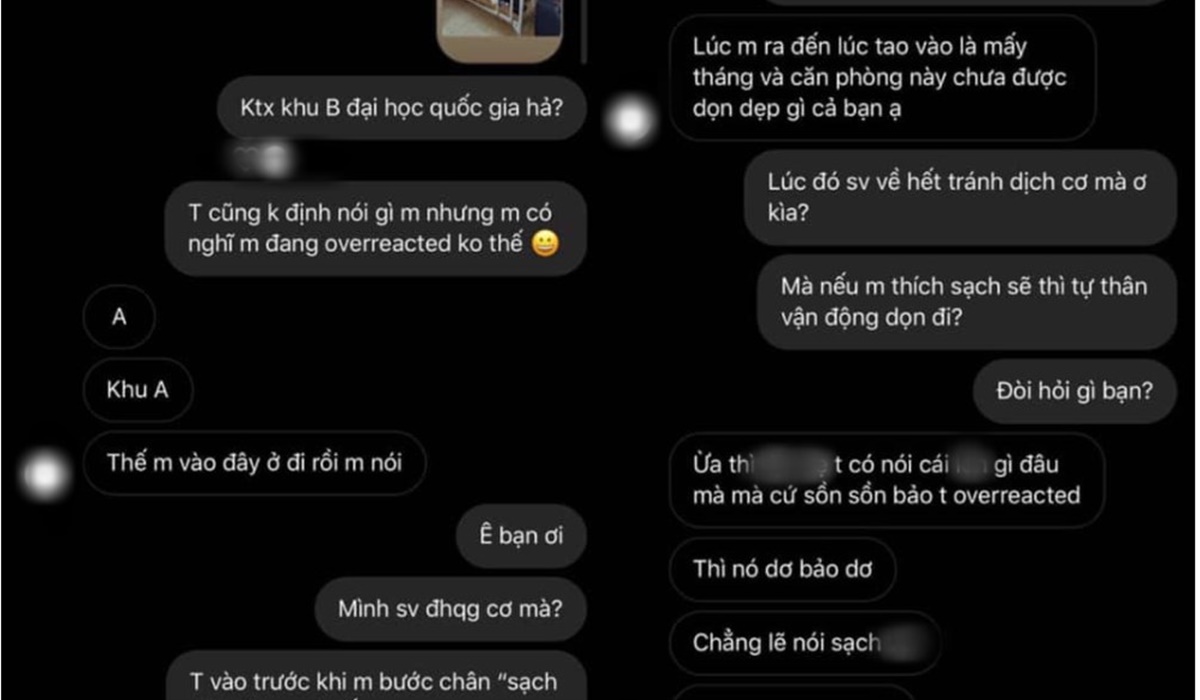 "Có thể nơi này hơi bừa bộn vì các bạn sinh viên phải dọn đồ gấp nhưng không biết tự dọn dẹp mà đã đăng bài bóc phốt à. Sinh viên người ta ở được chẳng lẽ du học sinh sang chảnh đến đâu mà không ở?"