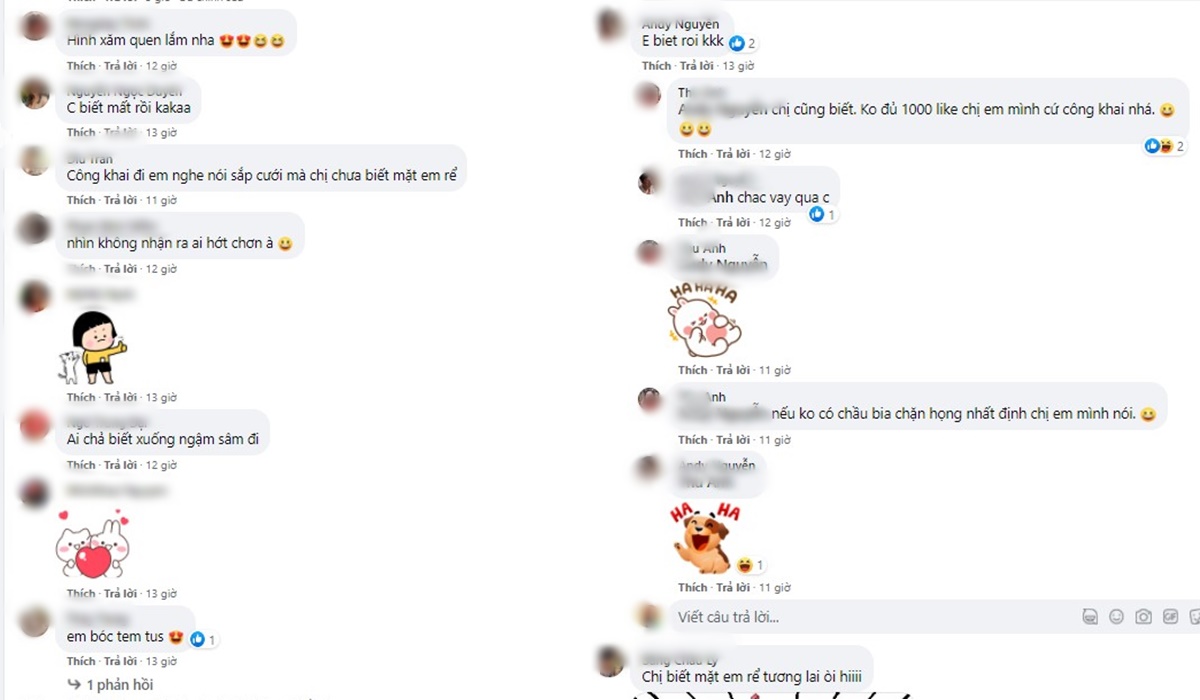 Việc con gái nuôi Hoài Linh đăng ảnh bạn trai nhưng lại không công khai danh tính khiến ai nấy vô cùng tò mò. Tuy nhiên, dưới phần bình luận nhiều bạn bè, thân thiết của Ánh Linh dường như đã nhận ra danh tính của chàng trai bí mật khi thấy chi tiết ‘hình xăm’ quá đỗi thân quen: “Hình xăm quen lắm nha!”, “Chị biết mất rồi”. Thậm chí có người quen còn cho biết tin đồn về việc nữ ca sĩ sắp kết hôn: “Công khai đi em nghe nói sắp cưới mà chị chưa biết mặt em rể”.