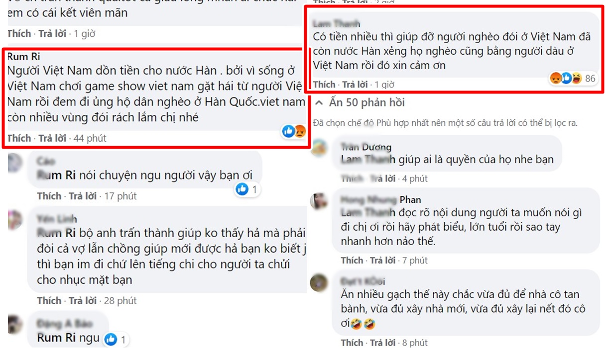 Ngay lập tức, bà xã Trấn Thành đã đáp trả những ý kiến này ở phần bình luận: “Có những ng nói sao ko giúp cho người Việt...