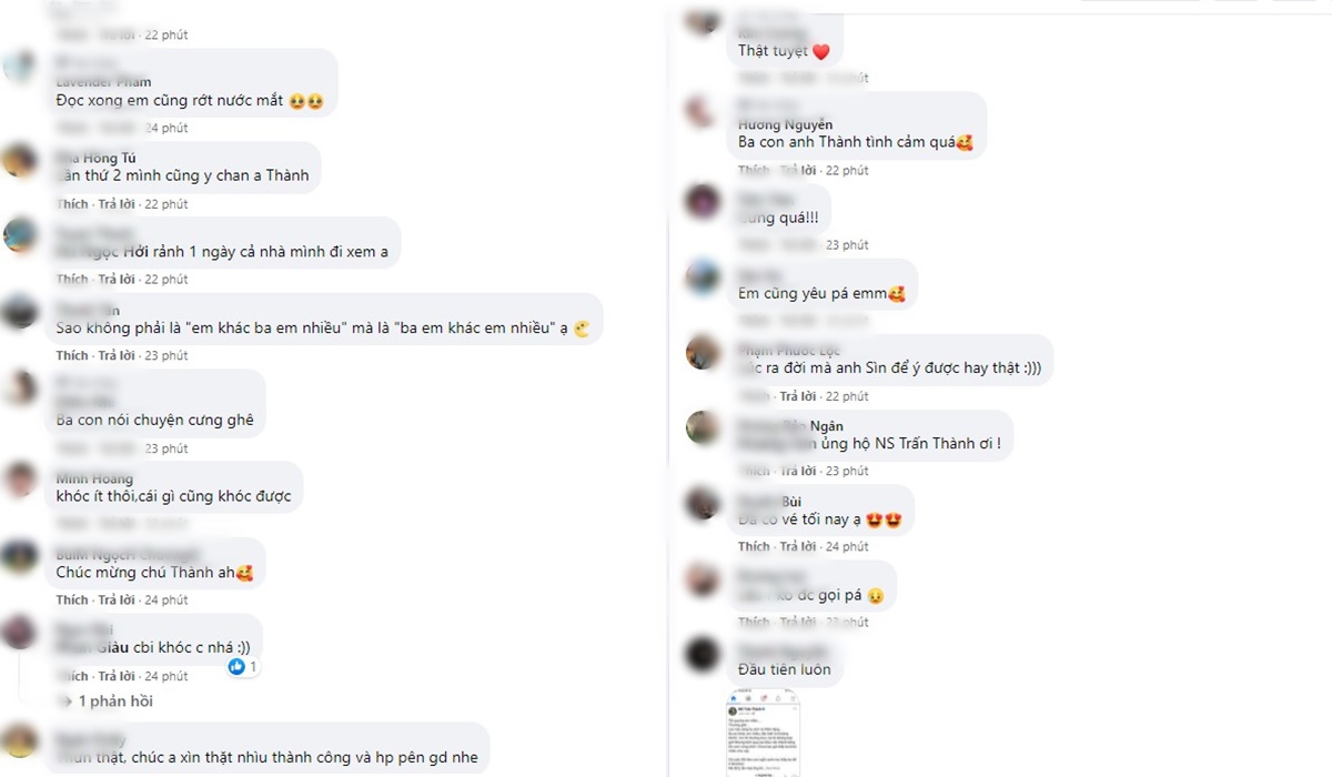 Nhiều khán giả thể hiện sự ngưỡng mộ với tình cảm cha con nhà Trấn Thành