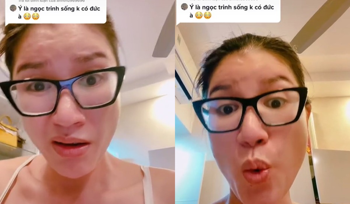 Một cư dân mạng đã để lại bình luận ngay dưới đoạn clip của Trang Trần với ý chỉ trích: “Ý nói Ngọc Trinh sống không có đức à?". Với tính cách thẳng thắn của mình, Trang Trần đã làm ngay một đoạn clip ngắn đáp trả. Cô gái thích rằng việc mình để quên đồ ở khu vui chơi đến 4 tiếng đồng hồ mà vẫn không có người lấy thì quá là may mắn chứ không hề có ý mỉa mai Ngọc Trinh.