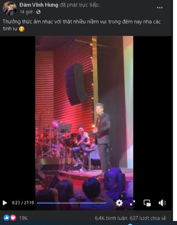 Đàm Vĩnh Hưng thậm chí còn đăng tải video màn trình diễn ca khúc “Đất nước trọn niềm vui” tại đêm nhạc Đồng Dao thu hút hơn 6 ngàn lượt bình luận.