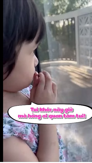 Ôm con gái nhỏ vào lòng, anh đã an ủi và dỗ dành cô bé như:"Thôi nào! Mai mốt phải nghe lời mẹ nghe chưa", "Ai biểu, con lì quá chi". Thậm chí, nam danh hài còn phải thốt lên: "Ba còn chịu không nổi mẹ con nữa, sao con dám chống cự". Tuy nhiên, mặc cho được ba dỗ dành, Destiny vẫn không chịu nín khóc.