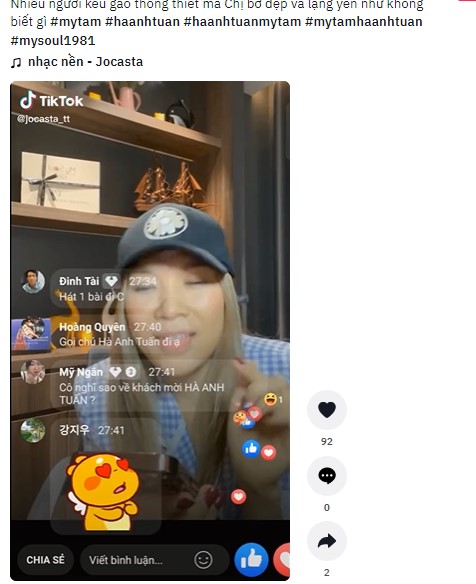 Ngay lập tức, trên gương mặt của Mỹ Tâm hiện ra nét bối rối nhẹ, cùng biểu cảm ngại ngùng mà thốt lên: Rồi, xong trời ơi, xỉu! Trời sao nghĩ ra được mấy chuyện này mà làm gì trời! Thôi các bạn đừng có làm quá đi, này là quá lắm rồi! Rất nhanh sau đó, Mỹ Tâm đã lẳng lặng lảng tránh sang chuyện khác, tránh nhắc trực tiếp đến cái tên Hà Anh Tuấn. Phản ứng đầy đáng yêu của Mỹ Tâm đã khiến người hâm mộ đầy thích thú và lan truyền khoảnh khắc này trên mạng xã hội Tiktok.