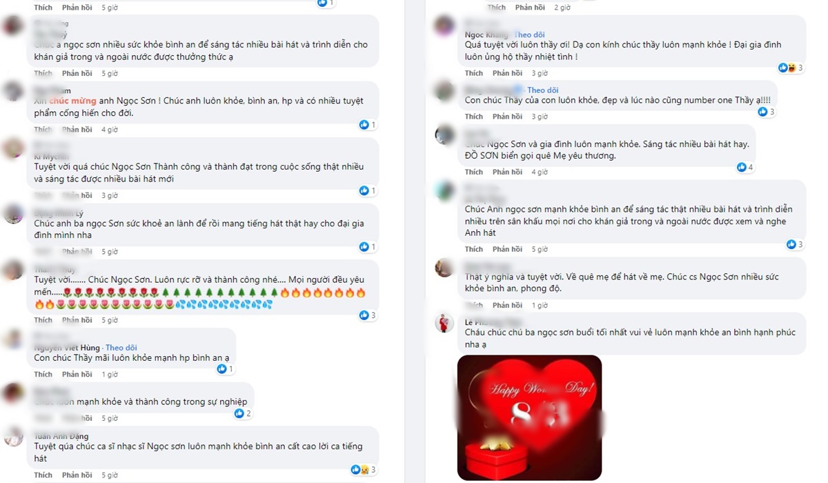 “Chúc Ngọc Sơn và gia đình luôn mạnh khỏe. Sáng tác nhiều bài hát hay”.