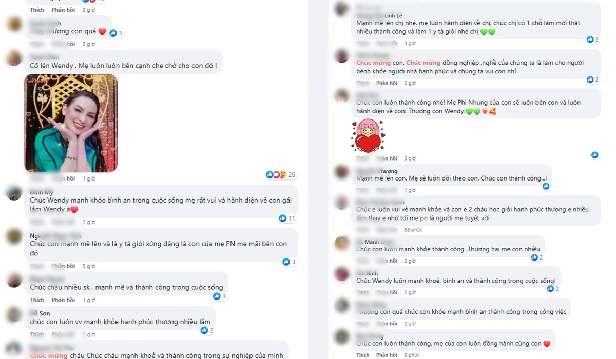 Chúc Wendy mạnh khỏe bình an trong cuộc sống mẹ rất vui và hãnh diện về con gái lắm Wendy à
