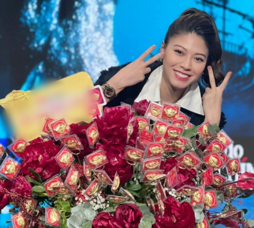 Không chỉ “chưng diện” bó hoa hàng tỷ đồng lên sóng truyền hình, Ngọc Trinh còn đăng tải “nhân vật đặc biệt” này lên trang cá nhân khiến ai nấy đều trầm trồ ngưỡng mộ. Dòng chia sẻ "Cũng 100 lượng vàng như ai chỉ buồn hôm nay không phải 8/3" cũng đã thu về hàng ngàn lượt tương tác và bình luận.