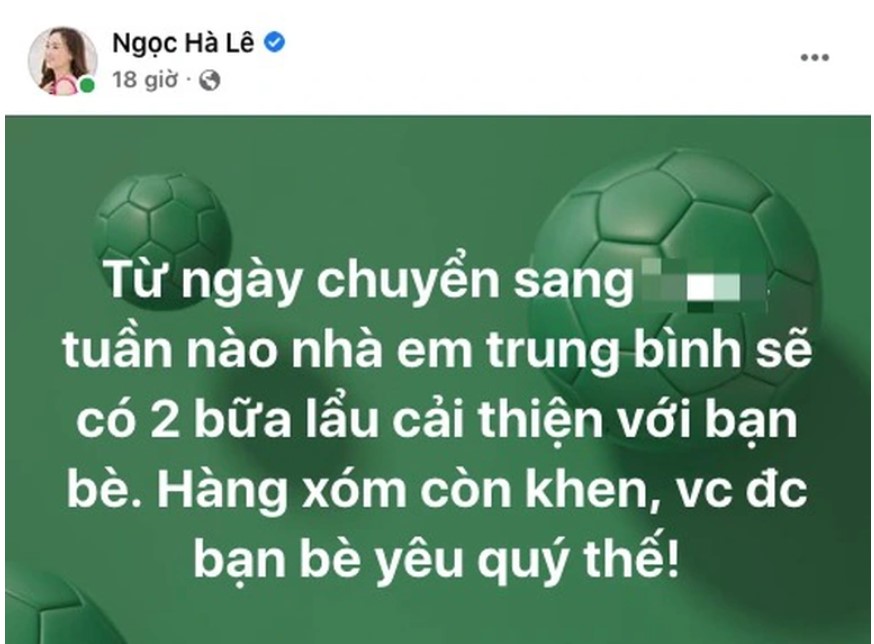 Mới đây, chia sẻ trên báo chí, bà xã NSND Công Lý thừa nhận năm 2021 là một năm biến động, khó khăn thế nhưng sang năm 2022 cuộc sống của hai vợ chồng đã có nhiều chuyển biến. Trên trang cá nhân, Ngọc Hà hào hứng kể vợ chồng cô để gần gũi gia đình hơn đã chuyển từ Cầu giấy về Hai Bà Trưng. Mỗi tuần ở ngôi nhà mới cả hai đều có khoảng hai bữa lẩu cải thiện với bạn bè.