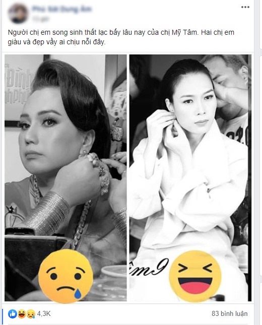 Mới đây, cư dân mạng đã có một màn ghép ảnh và so sánh thú vị giữa Mỹ Tâm và hiện tượng mạng xã hội “cô Minh Hiếu”. Theo đó, một tài khoản đã đăng vào nhóm kín một hình ảnh có nhiều nét tương đồng của Mỹ Tâm và một người phụ nữ đang rất nổi tiếng trên mạng với caption: “Người chị em song sinh thất lạc bấy lâu nay của chị Mỹ Tâm. Hai chị em giàu và đẹp vầy ai chịu nổi đây.”