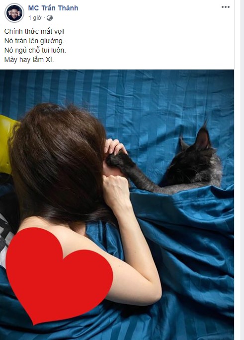 Mới đây, Trấn Thành cũng khiến fan không khỏi phì cười khi chia sẻ hình ảnh Hari Won nằm trên giường và ôm mèo cưng mà không hề mảy may chú ý đến chồng kèm caption: