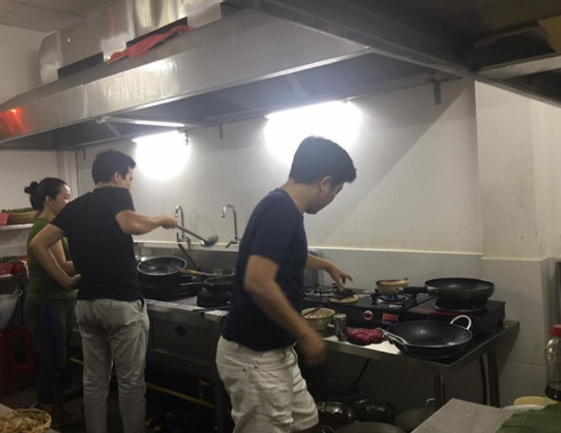 Dù gặp cảnh kinh doanh khó khăn, vợ chồng Trường Giang đồng hành cùng nhau để gồng gánh cửa hàng khi trong những trường hợp thiếu người, nam danh hài sẽ nấu bếp còn Nhã Phương sẽ hỗ trợ phụ bếp và rửa chén.