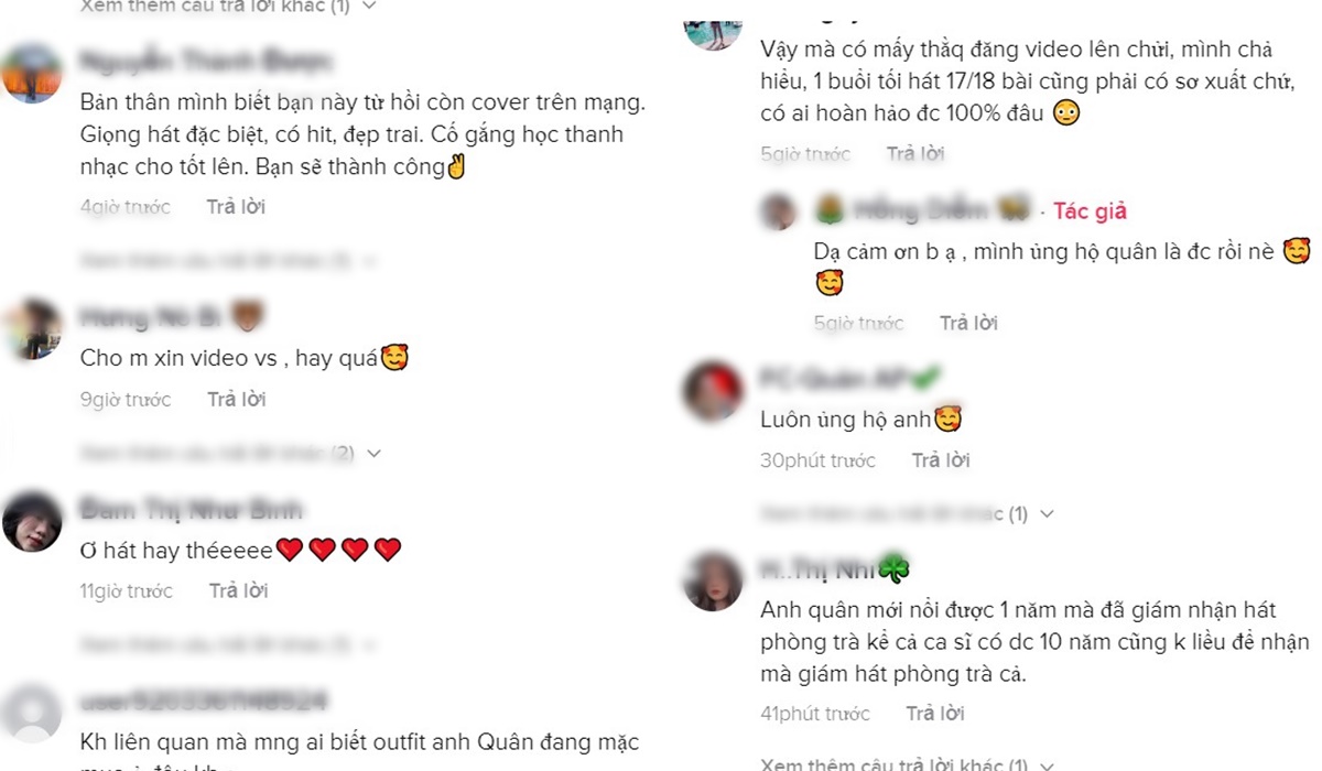 Bên cạnh đó, nhiều ý kiến cho rằng nhiều khán giả đã quá khắt khe với nam ca sĩ trẻ khi trong buổi biểu diễn phòng trà anh đã không có sự phối hợp ăn ý với ban nhạc. Điều đó là khá dễ hiểu với một ca sĩ trẻ như Quân A.P, nhiều khán giả dành lời khen và động viên cho anh: Bản thân mình biết bạn này từ hồi con cover trên mạng. Giọng hát đặc biệt, có hit, đẹp trai. Cố gắng học thanh nhạc cho tốt thêm, bạn sẽ thành công.', 'Anh Quân mới đi hát một năm đã giám nhận hát phòng trà đã là một sự dũng cảm rồi!", "Vậy mà có mấy video đăng chửi, mình chả hiểu, một buổi hát chục bài thì cũng có bài sơ suất chứ.