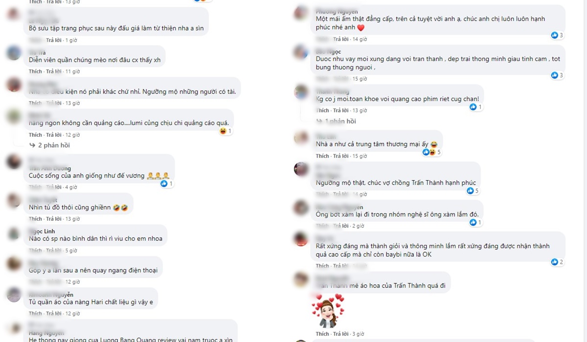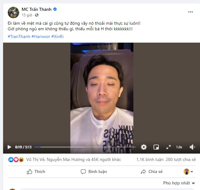 Như Trấn Thành chia sẻ phòng ngủ của anh giờ không thiếu bất kỳ một thứ gì, tuy nhiên nam MC cũng không quên nhắc đến vợ khi để lại dòng chú thích: "Giờ phòng ngủ em không thiếu gì, thiếu mỗi bà Hari thôi".