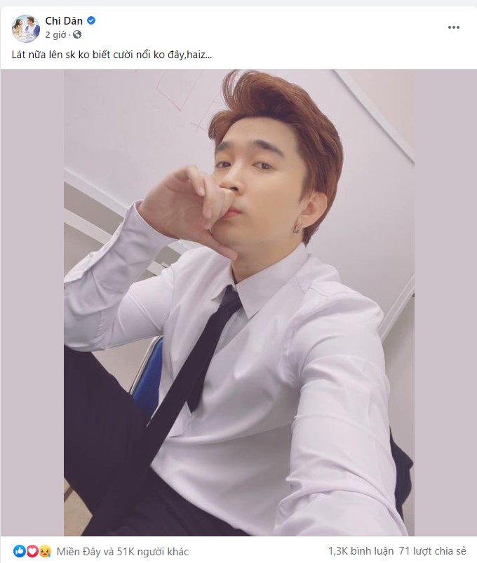 Mới đây, vào tối 21.4, nam ca sĩ đã chia sẻ hình ảnh ăn mặc bảnh bao nhưng gương mặt thì đượm buồn cùng dòng trạng thái: “Lát nữa lên sân khấu không biết cười nổi không đây, hazzz…”.