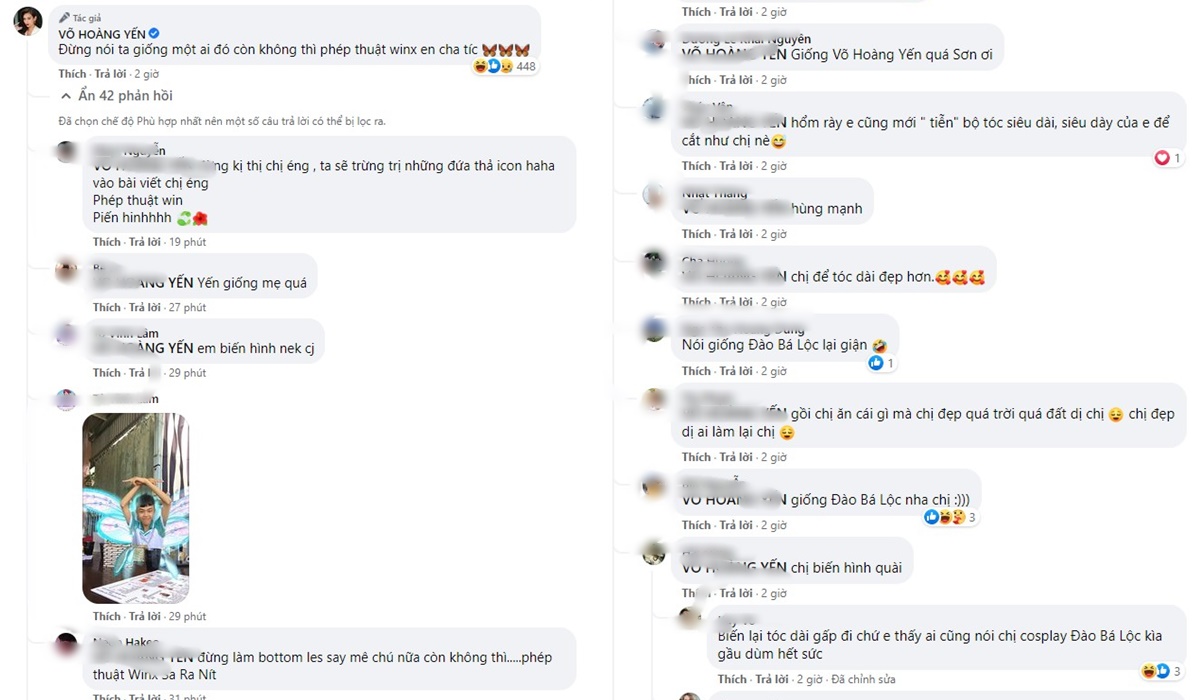 Có lẽ vì lối trang điểm và góc chụp nên Võ Hoàng Yến trông giống Đào Bá Lộc một cách lạ thường. Khi được so sánh với Đào Bá Lộc, Võ Hoàng Yến cũng vô cùng và còn đùa vô cùng hài hước: “Đừng nói ta giống một ai đó còn không thì phép thuật winx en cha tíc”.