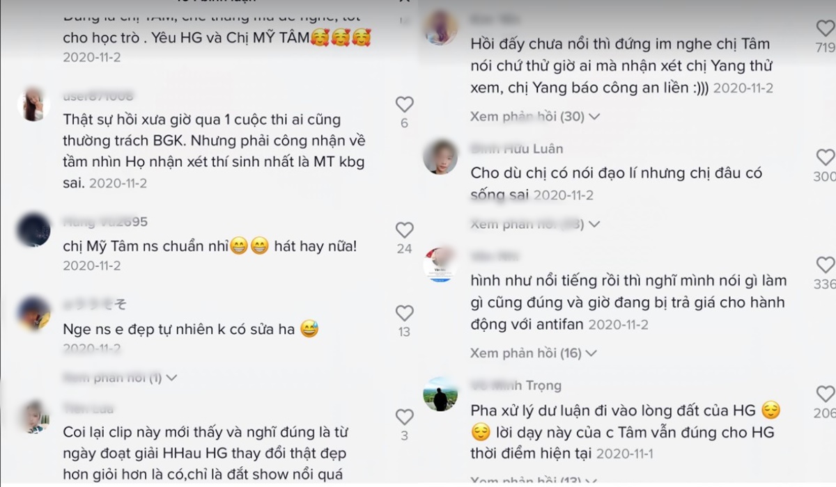 Lời nhận xét về Hương Giang của mỹ Tâm 9 năm trước bất ngờ một lần nữa dậy sóng cộng đồng mạng. Nhiều khán giả cho rằng đây là một nhận xét vừa có tâm lại có tầm của Mỹ Tâm:“Thật sự hồi xưa giờ qua 1 cuộc thi ai cũng thường trách BGK. Nhưng phải công nhận về tầm nhìn nhận xét thí sinh thì Mỹ Tâm không bao giờ sai.”,“Chị Tâm nói chuẩn nhỉ”, “Chị Tâm một người thầy, một đại diện cho thế hệ anh chị đi trước góp ý chân thành, tinh tế nhưng không kém phần sâu sắc”