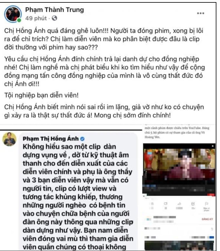 Liên quan đến vụ việc bà Nguyễn Phương Hằng tố ‘thần y’ Võ Hoàng Yên lừa đảo, nữ diễn viên Hồng Ánh là người đầu tiên lên tiếng về vụ việc. Tuy nhiên, vì sự hiểu lầm và chưa tìm hiểu kỹ thông tin mà nữ diễn viên đã tố nam diễn viên Bùi Công Danh cố tình giả mù, cùng ông Võ Hoàng Yên dàn dựng video lừa đảo. Thực chất đây chỉ là video được cắt từ bộ phim cũ chứ không phải là một clip dàn dựng chữa bệnh.