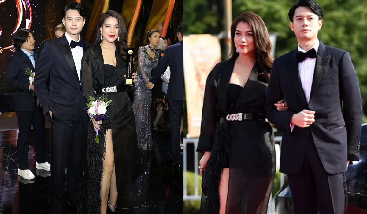 Theo đó, Trương Ngọc Ánh mắc một chiếc đầm ôm sát cơ thể, khoe được được đôi chân dài, thon gọn còn Anh Dũng thì lựa chọn một bộ vest tối màu vô cùng bảnh bao.