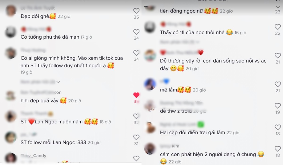 Mới đây, Ninh Dương Lan Ngọc và S.T Sơn Thạch đã cũng thực hiện một clip nhảy cover lại một điệu nhảy đang hot trên TikTok. Chính sự ăn ý của đôi bạn thân này đã khiến cư dân mạng phải xuýt xoa vì quá đẹp đôi và ăn ý. Nhiều người còn mong muốn cả hai trở thành một cặp: ‘Phải chăng anh chị là một cặp’, ‘Đẹp đôi quá trời ơi!’, ‘dễ thương gì đâu, tôi thích cặp đôi này’, ‘có tướng phu thê dã man’.