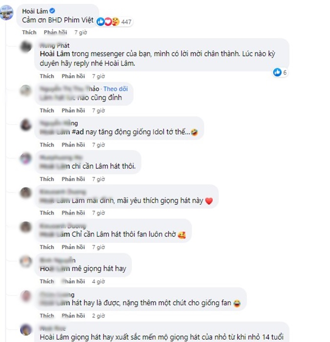 Bên cạnh đó cũng có không ít bình luận bày tỏ niềm mong mỏi sẽ sớm được thấy Hoài Lâm trên sân khấu âm nhạc trong tương lai gần.