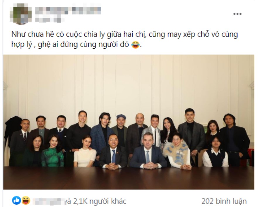 Mới đây, hai nữ nghệ sĩ bất ngờ cùng tham gia chung một sự kiện diễn ra tại London, Anh. Khoảnh khắc hai người chạm mặt nhau đã nhanh chóng được chia sẻ và khiến dân tình bàn tán sôi nổi, nhất là về nhan sắc cùng thần thái của hai nữ nghệ sĩ. Cụ thể, trên một diễn đàn đăng tải bức ảnh Hồ Ngọc Hà và Lệ Quyên chụp chung một bức hình kèm dòng trạng thái “Như chưa hề có cuộc chia ly giữa hai chị, cũng may xếp chỗ vô cùng hợp lý, ghệ ai đứng cùng người đó”.