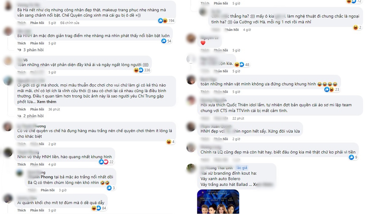 “Bà Hà công nhận đẹp thật, makeup trang phục nhẹ nhàng mà vẫn sang chảnh nổi bật. Chế Quyên cũng xinh mà cái gu bị ố dề”.