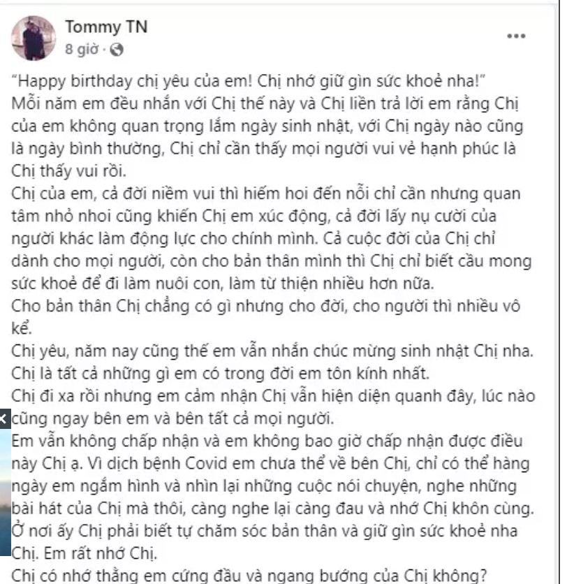 Bài đăng của em trai Phi Nhung