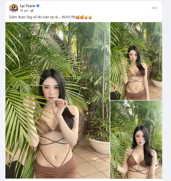 Mới đây, trên trang facebook cá nhân, nữ diễn viên ‘Người phán xử’ khiến khán giả "đứng ngồi không yên" khi tung bộ ảnh ‘nửa kín, nửa hở’ với dòng caption: Giảm được 5kg số đo hiện tại là…. 90/61/99.