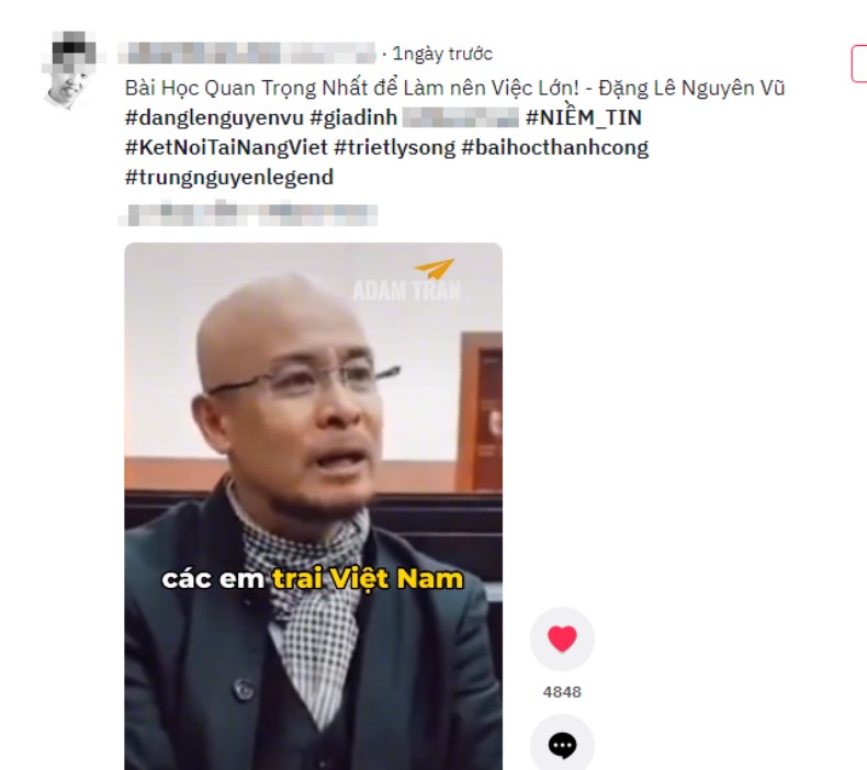 Sau khi vụ ly hôn vừa kết thúc, quan điểm chọn vợ của ông Đặng Lê Nguyên Vũ bất ngờ hot trở lại và trở thành chủ đề bàn tán trên mạng xã hội. Cụ thể ngày 10/4, mạng xã hội Tiktok bất ngờ lan tuyền video phỏng vấn của ông Đặng Lê Nguyên Vũ từ năm 2019 nói về quan điểm nên nên chọn vợ chọn chồng. Trong video, ông chủ cà phê Trung Nguyên nói: