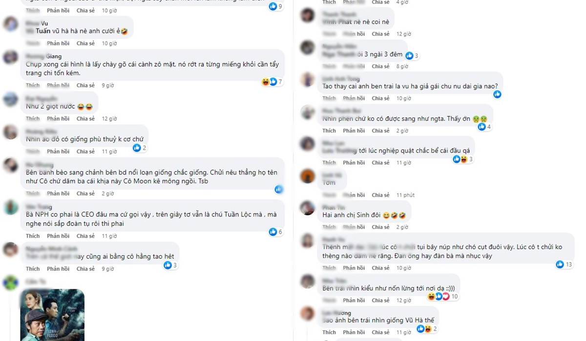 Đáng nói, dân tình nhanh chóng nhận ra hình tượng mà nam ca sĩ đang cosplay vô cùng giống với CEO Nguyễn Phương Hằng. Ngay lập tức, trên 1 diễn đàn có tới 7 trăm ngàn thành viên đã ghép ảnh hoá trang của Vũ Hà với vị chủ tịch Đại Nam. Bức ảnh ghép này được một tài khoản facebook đăng tải lên đang được lan truyền với tốc độ chóng mặt.