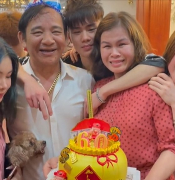 Mới đây, Quang Tèo tổ chức tiệc sinh nhật lần thứ 60 bên gia đình và bạn bè. Đoạn clip vô cùng đặc biệt với sự xuất hiện công khai lần đầu tiên của bà xã nam nghệ sĩ. Vợ Quang Tèo cầm một chiếc bánh sinh nhật to hình hũ vàng, còn Quang Tèo xuất hiện trẻ trung với chiếc mũ chóp sinh nhật. 2 vợ chồng đứng bên cạnh bố mẹ và nhìn nhau cười vui vẻ.