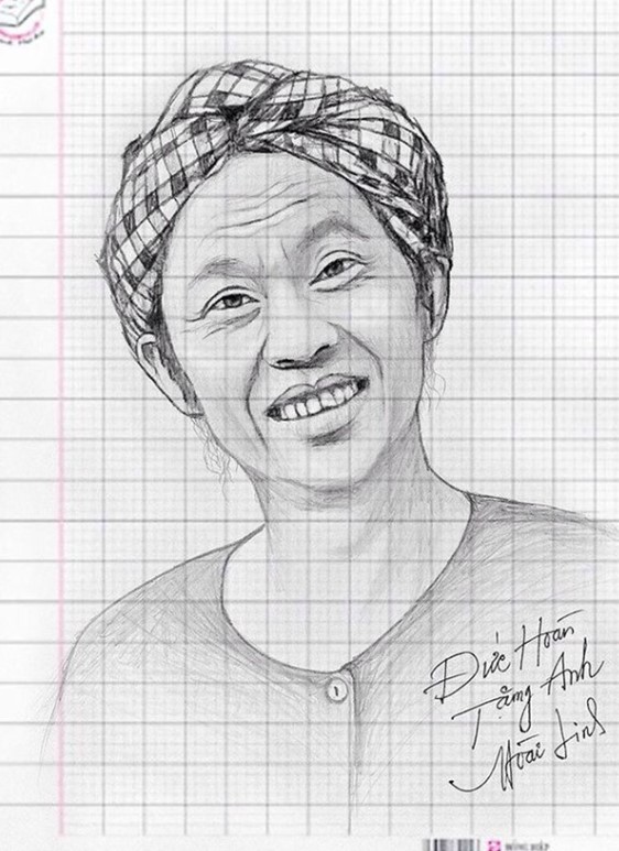 Hoài Linh mặc áo bà ba, đội khăn rằn là hình ảnh giản dị rất đỗi thân quen với khán giả Việt Nam được fan vẽ tặng Hoài Linh một bức tranh rất ý nghĩa và nhận được 1.248.469 lượt thích.
