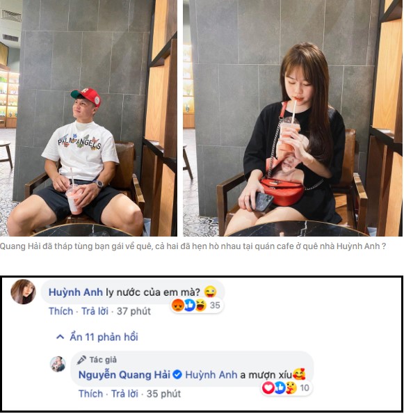 Mới đây nhất, Quang Hải cũng ngầm thông báo hẹn hò khi cập nhật ảnh trên trang cá nhân với cùng địa điểm mà đây cũng là nơi "bạn gái tin đồn" check- in trước đó vài ngày, Huỳnh Anh còn tiết lộ đây là quán cafe ở quê nhà cô. Cư dân mạng không khỏi đồn đoán rằng Quang Hải đã về nhà Huỳnh Anh và chỉ chờ thời điểm chính thức công khai hẹn hò là dân tình có thể chúc phúc mỏi tay rồi.
