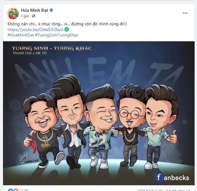 Đặc biệt khi chia sẻ đường link youtube để khán giả ủng hộ, Hứa Minh Đạt còn chia sẻ dòng trạng thái đầy ẩn ý: “Không nản chí... không nhục lòng... vì... đường còn đó mình cùng đi!!!”