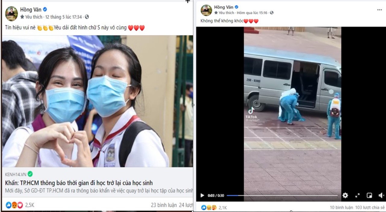 Trong những ngày gần đây, NSND Hồng Vân chỉ chia sẻ những hình ảnh thông tin tích cực giúp mọi người có thêm tinh thần vượt qua dịch bệnh và không hề nhắc tới lùm xùm xảy ra. Nhưng thái độ im lặng và hành động khóa bình luận lại càng khiến khán giả không hài lòng và có phần ức chế đặc biệt là khi bà Nguyễn Phương Hằng vẫn liên tục chỉ trích giới nghệ sĩ trên sóng livestream.