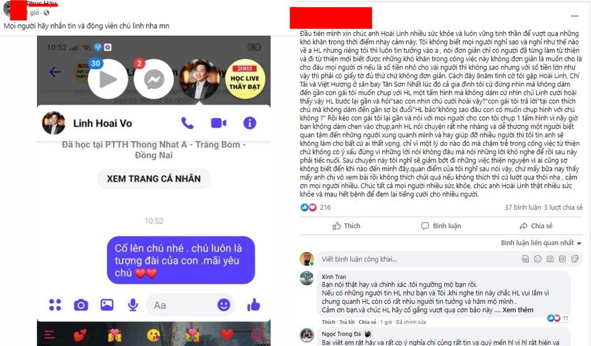 Thậm chí, không ít người hâm mộ còn chia sẻ những hình ảnh tích cực của nghệ sĩ Hoài Linh trong quá khứ và kêu gọi mọi người nhắn tin động viên nam danh hài vượt qua thời điểm khó khăn này.