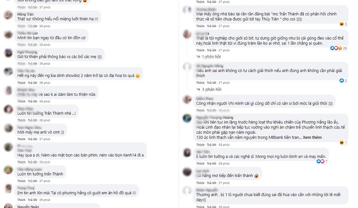 Theo đó, sau lùm xùm chuyện từ thiện của NS Hoài Linh, CĐM lan truyền nghi vấn khoản tiền từ thiện Trấn Thành quyên góp được từ khán giả vẫn chưa được gửi đến Thuỷ Tiên vì chưa hề thấy nữ ca sĩ đăng tải bài cảm ơn trên trang cá nhân.