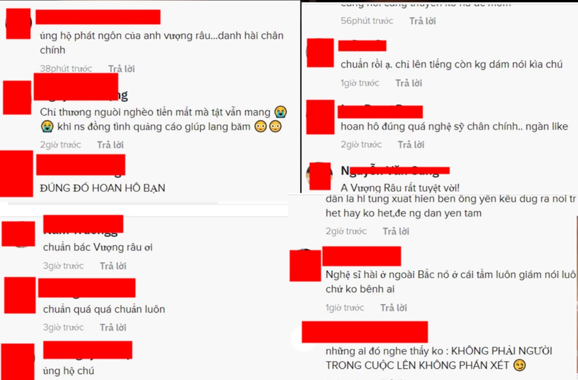 Nhiều khán giả thể hiện sự tán thành với quan điểm rằng nếu ai làm sai thì phải chịu trách nhiệm của pháp luật của Vượng Râu: 'Ủng hộ phát ngôn của anh Vượng râu, danh hài chân chính','những ai đó nghe thấy không: Không phải người trong cuộc nên không phát xét', 'Chuẩn quá bác ơi', 'Hoan hô, đúng là nghệ sĩ chân chính.'