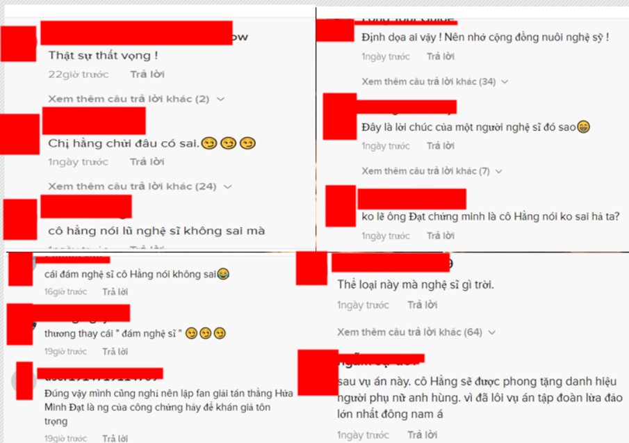 Hiện tại, một số nghệ sĩ lên tiếng bênh vực Hoài Linh hay có động thái đá xéo bà Hằng đang nhận về sự chỉ trích của đông đảo khán giả.