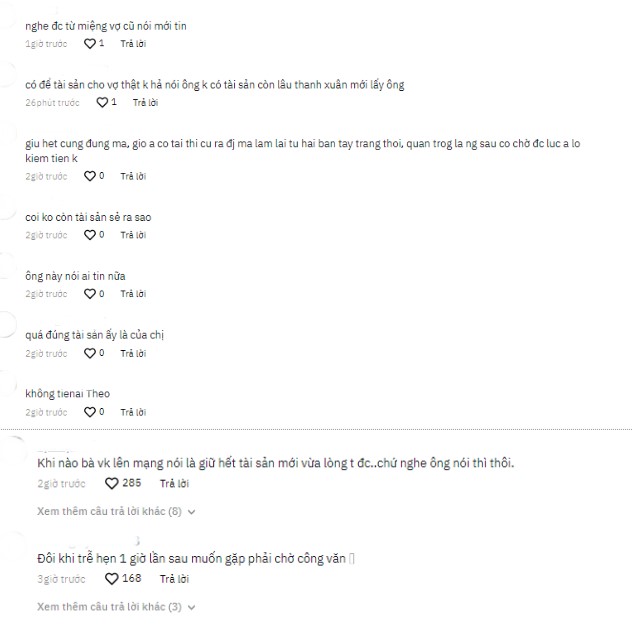 "Khi nào bà vợ lên mạng nói là giữ hết tài sản mới vừa lòng t được..chứ nghe ông nói thì thôi."