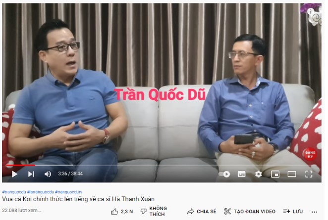 Cụ thể khi Luật sư Trần Quốc Vũ đặt câu hỏi: "CĐM cũng như báo chí có rất nhiều ý kiến trái chiều, đặc biệt có ý kiến cho rằng ca sĩ Hà Thanh Xuân đến với anh là do anh là 'vua cá Koi' giàu sang, nhiều tiền của, nhiều đất đai, tài sản,... ? Anh có suy nghĩ thế nào?"