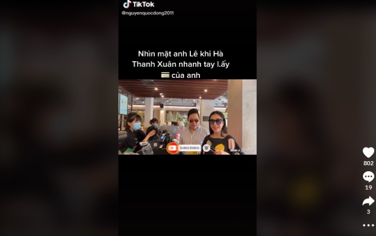 Từ đoạn clip, nhiều khán giả tin tưởng chắc chắn rằng thời gian đó cả Quang Lê và Hà Thanh Xuân đều đang trong một mối quan hệ bất thường. Chỉ có là người yêu mới có thể thoải mái giữ và xài tiền của đối phương như vậy. Chưa dừng lại ở đó, nhiều ý kiến còn liên tưởng đến việc Hà Thanh Xuân thường xuyên dính tin đồn với người đàn ông giàu có, điều kiện để ‘vòi tiền’: