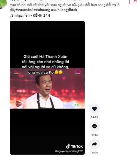 Cũng xuất hiện cùng trong chương trình, khi được MC hỏi: "Động lực nào giúp chồng trở thành Vua cá Koi?" Người vợ cũ của 'Vua cá Koi' đã không ngần ngại mà lên tiếng: "Người phụ nữ hoặc là người đàn ông mình gắn kết với nhau, mình phải chịu trách nhiệm cho cái chuyện mình lựa chọn, mình may mắn mình lựa chọn tình yêu, mình đã yêu mà đã yêu thì tôi tin rằng không có cái gì không vượt qua được."